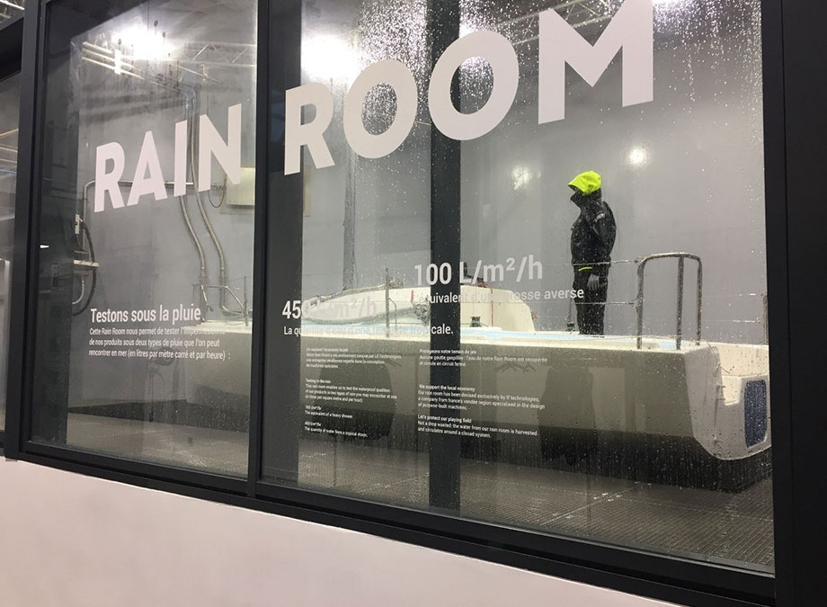 La Rain Room est équipée d’un système de pulvérisation conçu pour assurer une couverture homogène sur l’ensemble de la zone de test.